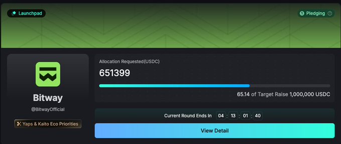 그렇다면 최근 @KaitoAI 자본 Launchpad에 8천만 달러(지난 라운드 1억 달러에서 감소)의 투자 유치를 위해 등장한 @BitwayOfficial에 투자해야 할까요? 👇🏻