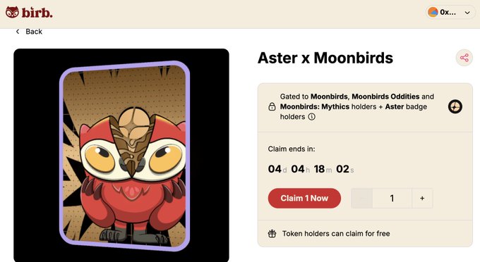 🪂Aster 사용자분들은 Moonbird SBT 1개를 획득하실 수 있습니다. 가격은 1 U입니다: minting.moonbirds.com/landingp...
