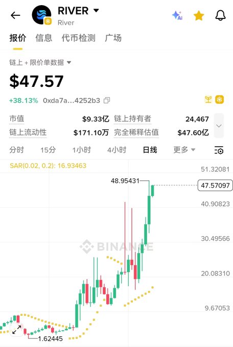 1. @RiverdotInc는 Sun Ge로부터 8백만 달러의 전략적 융자 유치하고 멀티체인 자산을 Tron과 Sui로 확장했습니다. 2차 시장 가격은 50U에 매우 근접했습니다. 하지만 아쉽게도 많은 코인 너무 일찍 매도되었고, 숏(Short) 로스 컷 되었습니다.
