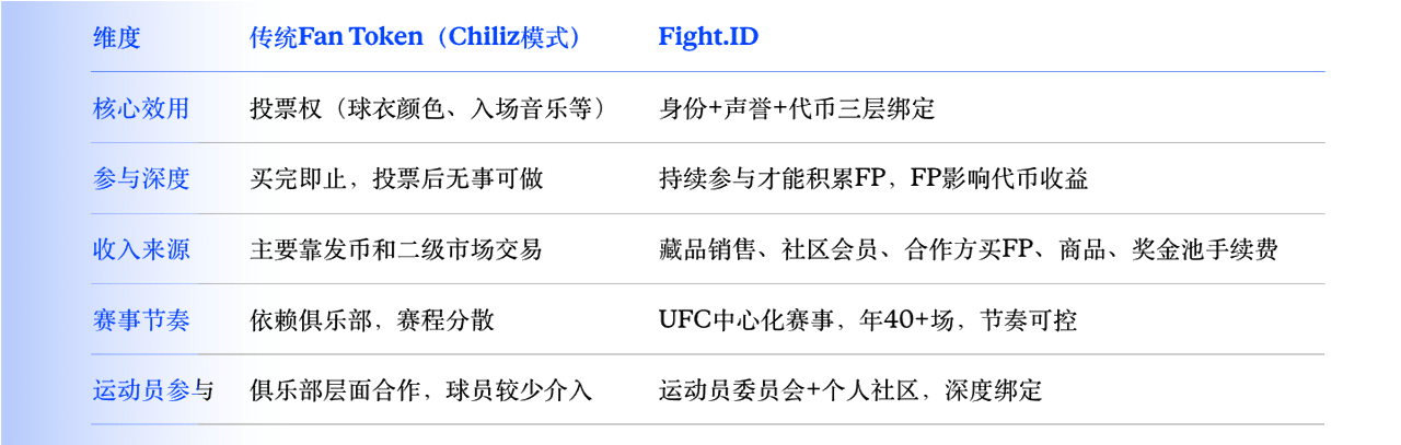 디자인 관점에서 볼 때, Fight.ID는 기존 팬 토큰에 비해 한 단계 더 나아간 구조를 가지고 있습니다. 단순히 토큰을 판매하는 것이 아니라, 먼저 정체성을 구축하고, 평판을 쌓은 다음, 최종적으로 토큰을 수익화합니다.