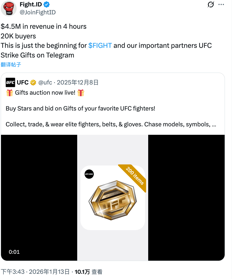 2025년 12월 7일, Fight.ID는 해당 주에 열리는 UFC 이벤트와 연계하여 텔레그램에서 디지털 수집품 캠페인을 시작했습니다.
