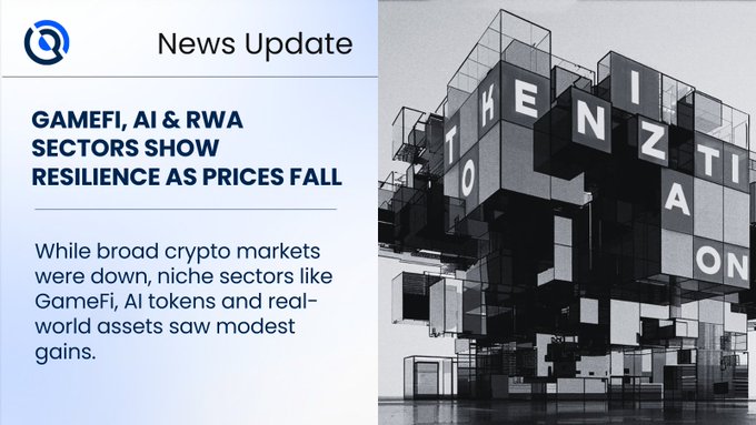 업데이트: GameFi, AI 및 실물자산(RWA) 부문, 가격 하락 속에서도 회복력 보여 암호화폐 시장 전반이 하락세인 가운데, GameFi, AI 토큰, 실물자산과 같은 틈새 부문은 소폭 상승했습니다.
