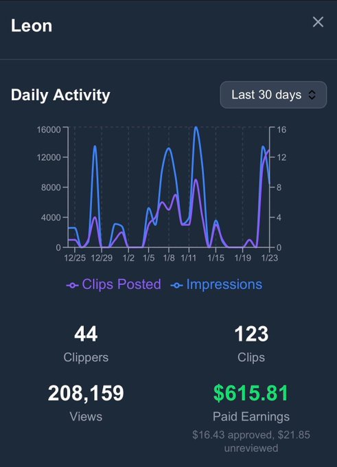 이건 정말 대단해요. @sharbel이 단 24시간 만에 내부 클리퍼 캠페인을 추적하고 시각화할 수 있는 웹사이트 전체를 바이브코드로 만들었어요.