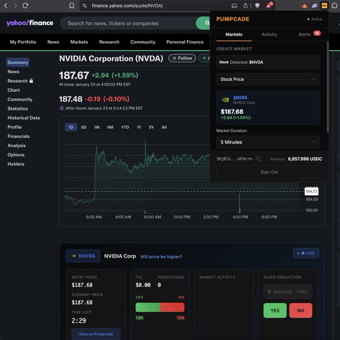 주가 변동성이 심한 시장에서 @pumpcade로 예측해 보세요! 빠르게 변화하는 실시간 시장에서 주식 가격을 예측해 보세요. Pumpcade는 현재 주식, 암호화폐 가격, 게임, 예측 시장 확률, 포켓몬 팩 개봉 등 다양한 시장을 지원하며, 앞으로 더 많은 시장을 추가할 예정입니다. 언제 어디서든 모든 것에 예측해 보세요.