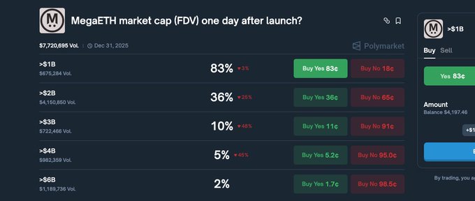 1) 폴리마켓에 10억 달러 이상의 FDV 베팅 $MEGA