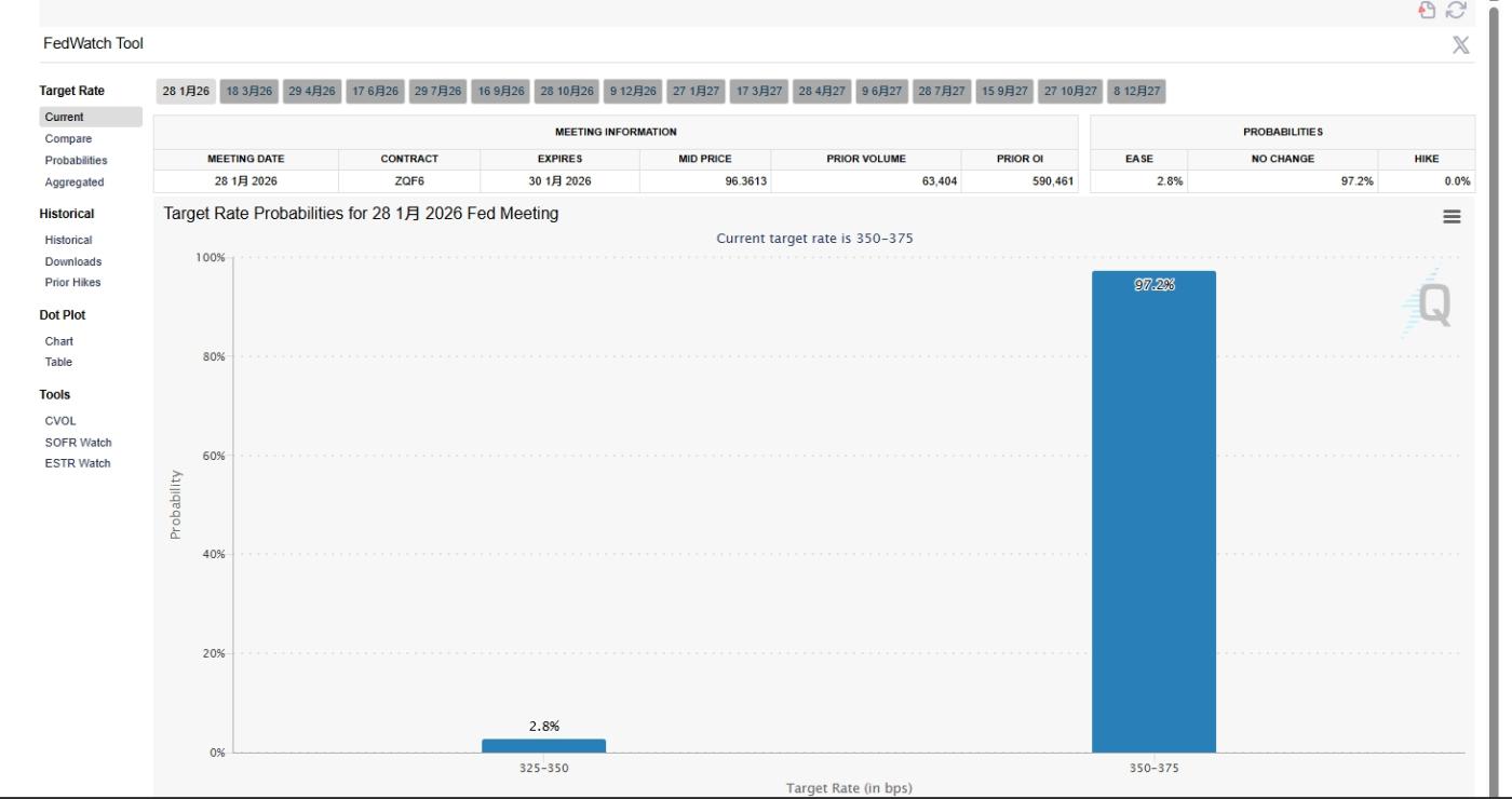 관세와 지정학적 요인에 더해 통화 정책, 특히 연준의 1월 회의가 중요한 변수로 작용하고 있습니다. 시장의 기대감은 이례적으로 일치하며, 투자자들은 이번 주 금리 인하가 없을 것으로 대체로 예상하고 있습니다.