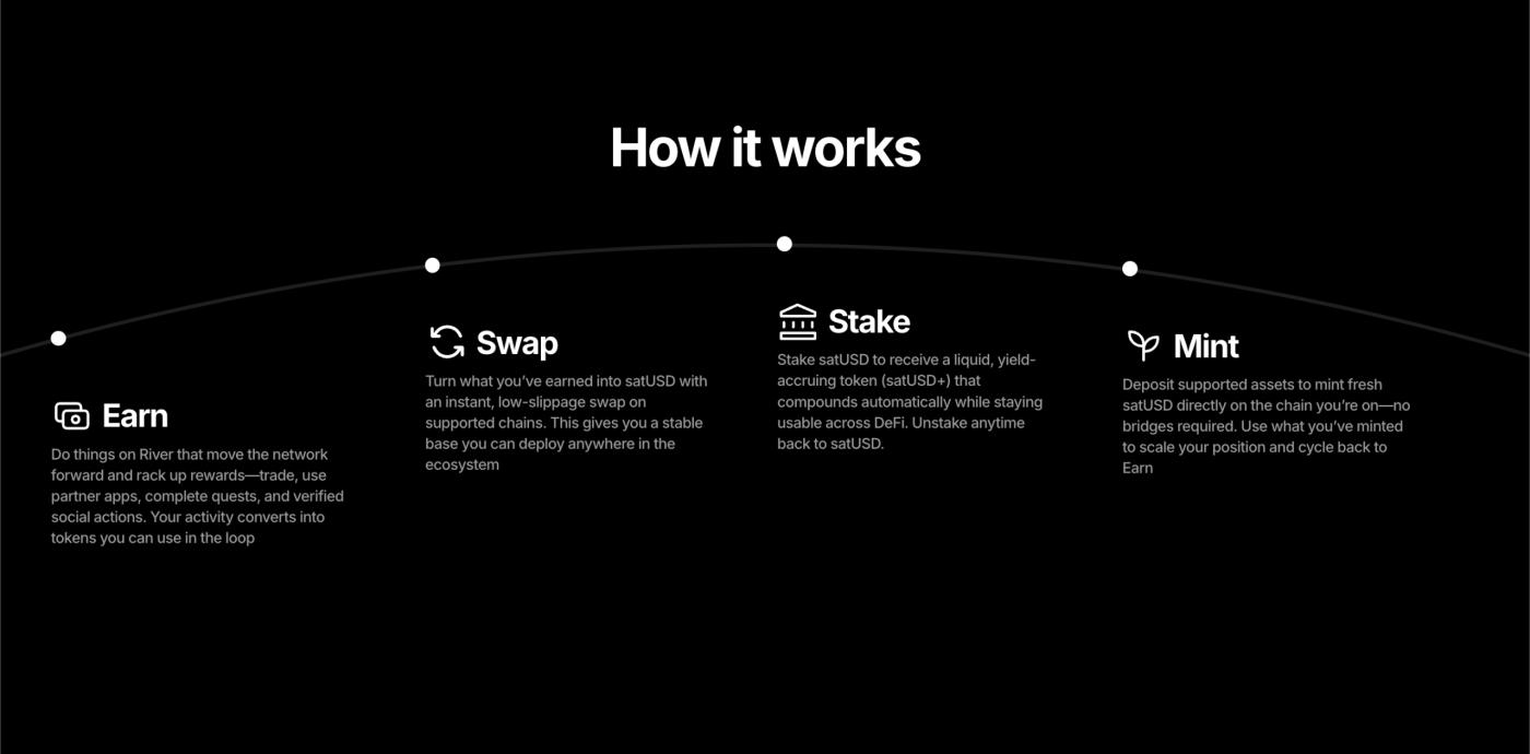 River는 진입 장벽을 낮춥니다. satUSD는 USDT, USDC, USD1과 1:1로 교환할 수 있습니다. 사용자는 CDP 작동 방식을 먼저 배우지 않고도 satUSD를 사용할 수 있습니다. 시스템이 복잡한 부분을 백그라운드에서 처리합니다.