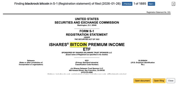 속보: 블랙록, 새로운 비트코인 프리미엄 소득 ETF 관련 S1 서류 제출 iShares Premium Income ETF: "월별 커버드 콜 옵션 매도를 통해 월별 프리미엄 소득을 제공합니다." 비트코인의 금융화가 가속화되고 있습니다... 이것이 비트코인에 좋은 것일까요, 나쁜 것일까요?