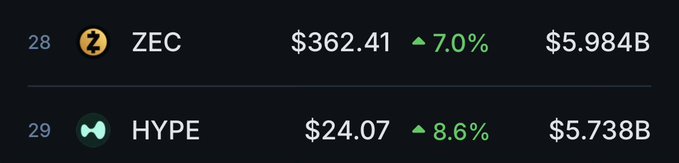 $BTC가 더 낮은 가격에서 거래될 가능성이 충분히 있다고 생각하지만, $ZEC와 $HYPE를 전혀 안 들고 있는 리스크는 감수할 가치가 없다고 본다.
