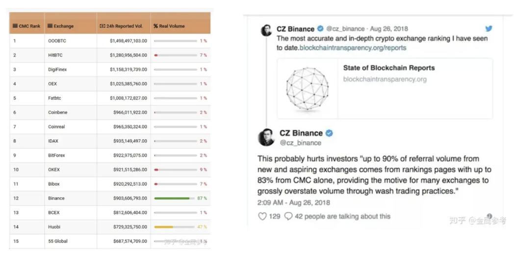 1. 허위 거래량 생성: "훌륭한"거래소 자칭하는 곳들은 프로젝트 팀뿐만 아니라 개인 투자자 까지 착취합니다. 가장 흔한 수법은 거래소 직원이나 관계자들이 대량 매수 및 매도 주문을 통해 허위 거래량을 만들어내어 더 많은 개인 투자자 투자자를 유치하고 토큰 가격을 조작하는 것입니다. 이러한 행태는 흔히 "거래량 세탁" 또는 "주문 세탁"으로 알려져 있습니다. 블록체인 투명성 연구소(BTI)의 이전 보고서에 따르면 전 세계 상위 25개 거래소 의 거래량 중 80% 이상이 허위 거래를 통해 생성된 것으로 나타났습니다. 이 보고서는 일부 거래소 의 실제 거래량이 보고된 거래량의 1%에도 미치지 못한다고 지적했습니다. 보고서 발표 직후, 한 주요 거래소 임원은 해당 보고서를 리트윗하며 "이것은 내가 본 가상화폐 거래소 가장 정확하고 통찰력 있는 순위다"라고 논평했습니다.