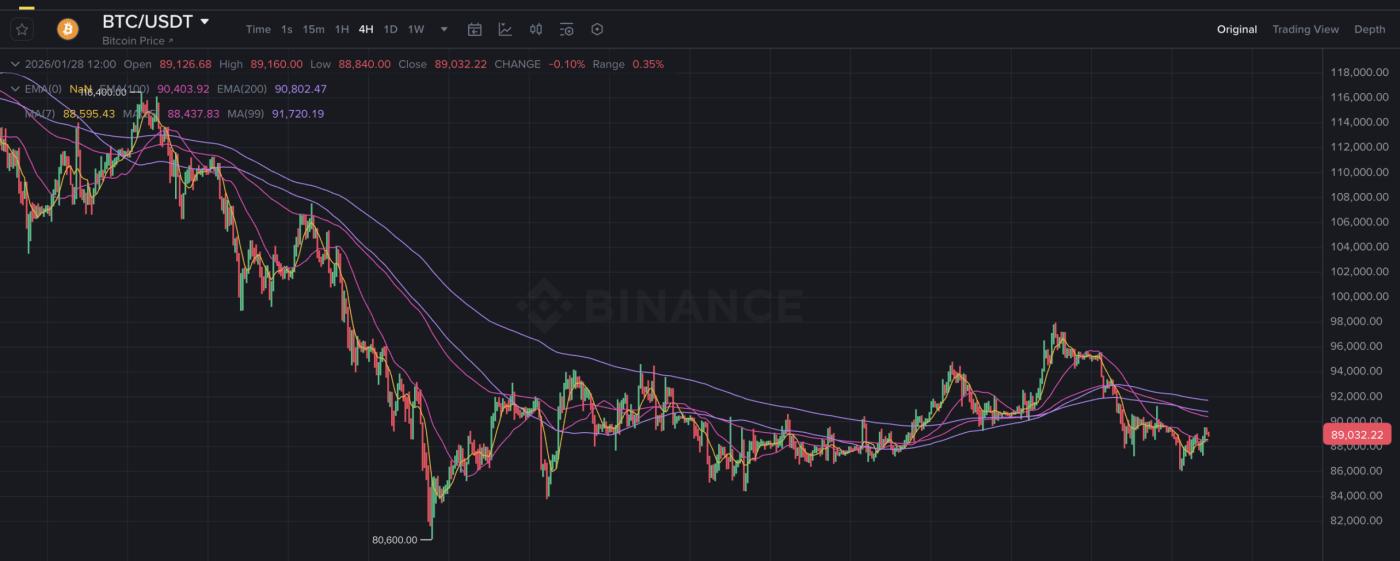 비트코인은 1월 15일 89,000에서 98,000까지 반등했지만, 지난 한 주 동안 하락세를 보이며 90,000 지지선을 하향 돌파했고, 강력한 단기 지지선인 86,000을 반복적으로 테스트했습니다. 현재는 88,500이라는 중요한 저항선 위에서 안정세를 보이고 있습니다. 만약 90,000이라는 심리적 저항선을 다시 돌파할 수 있다면 추가적인 반등이 예상됩니다.