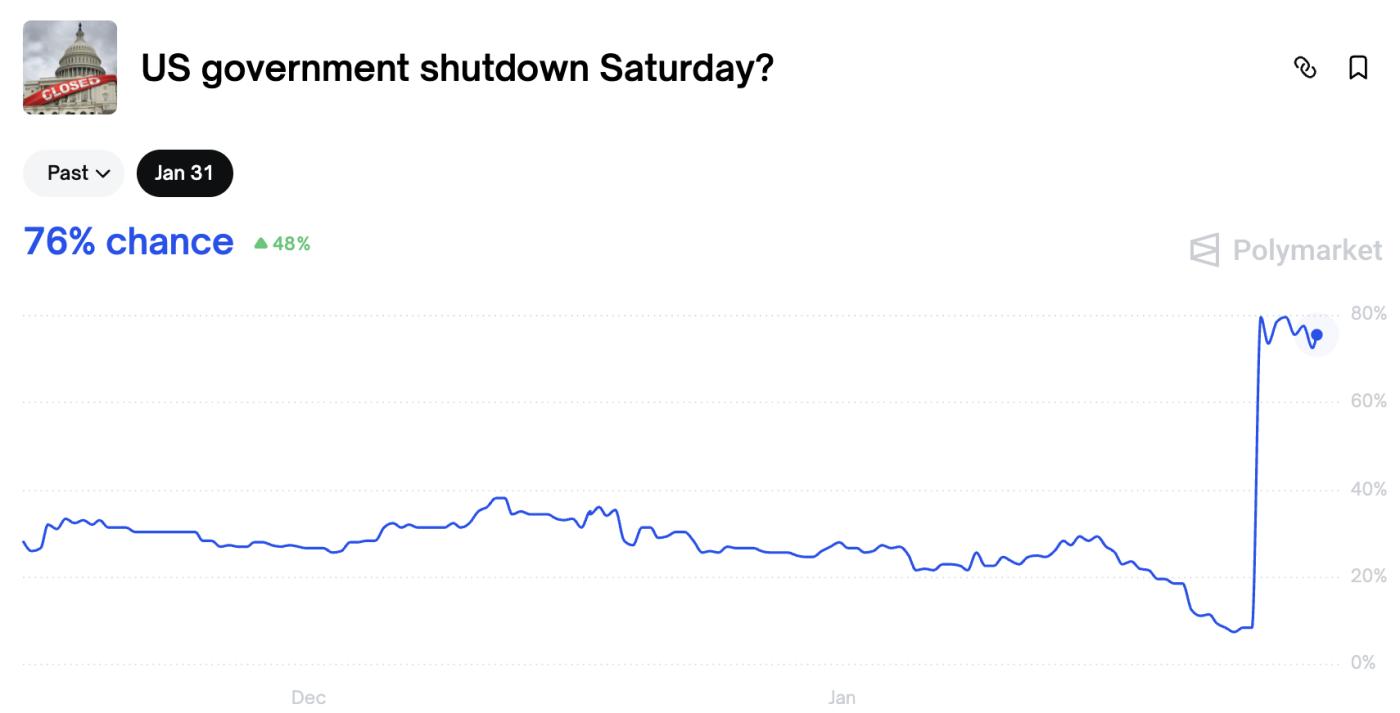 정부 셧다운 임박: 1월 31일까지 76~80% 확률