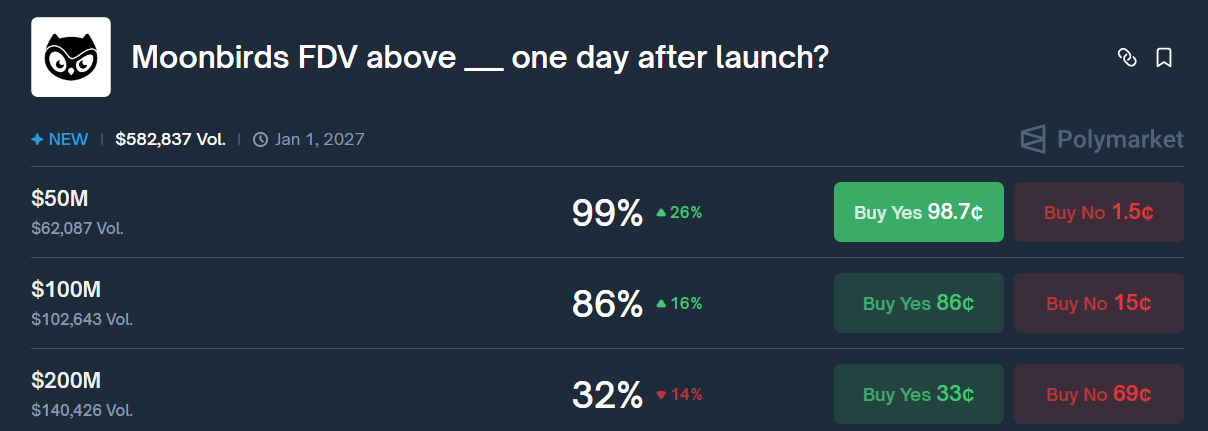 해당 가격과 프로젝트의 토큰 경제성을 기준으로 볼 때, BIRB의 완전 희석 가치는 약 3억 350만 달러, 시가총액은 8,650만 달러에 달하며, 이는 관련 폴리 마켓 (Polymarket) 시장에서 예상하는 출시 하루 후(내일 오후 4시(미국 동부시간))의 완전 희석 가치보다 이미 훨씬 높은 수치입니다.