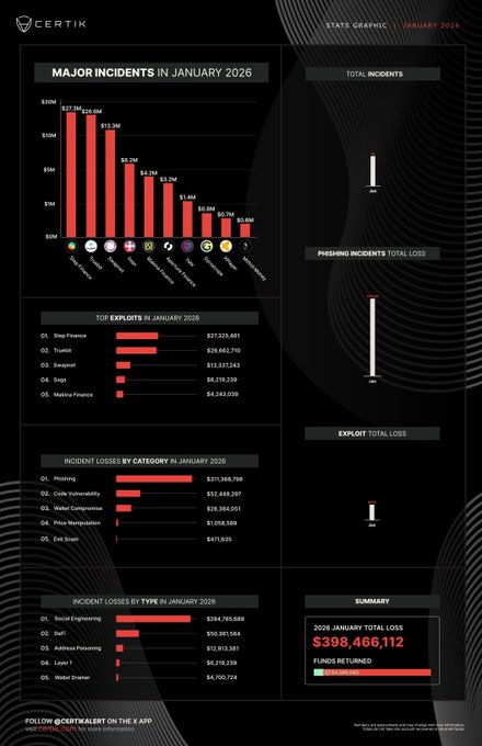 1월에 발생한 모든 사건을 종합한 결과, 악용으로 인한 손실액이 약 3억 7,030만 달러에 달하는 것으로 확인되었습니다.