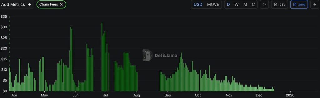 - 온체인 활동 중단: 온체인 수수료 데이터에 따르면 Movement의 일일 거래 수수료가 최근 0에 도달했으며, 이는 온체인 활동이 완전히 중단되었음을 직접적으로 반영합니다.