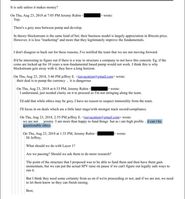 Also found this email where Epstein tells Bitcoin developer Jeremy Rubin he has ethical concerns regarding pumping crypto tokens, which I just found kind of funny. Not sure if this email was already out there.