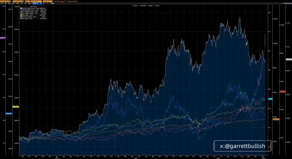 최근 시장에서 다소 이상한 주장이 제기되고 있는데, 이는 비트코인(BTC)과 이더리움(ETH)을 단순히 "리스크 자산"으로 정의하여 미국 주식, A급 주식, 귀금속 또는 비철금속의 상승세를 따라가지 못한 이유를 설명하려는 것입니다.