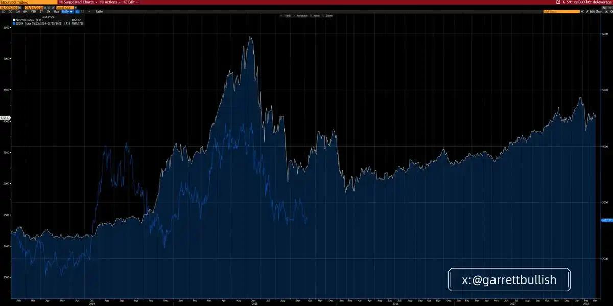 현재 암호화폐 시장은 높은 레버리지에 의해 주도되었던 중국 A주 시장이 디레버리징 국면에 진입했던 2015년 당시의 상황과 매우 유사합니다.