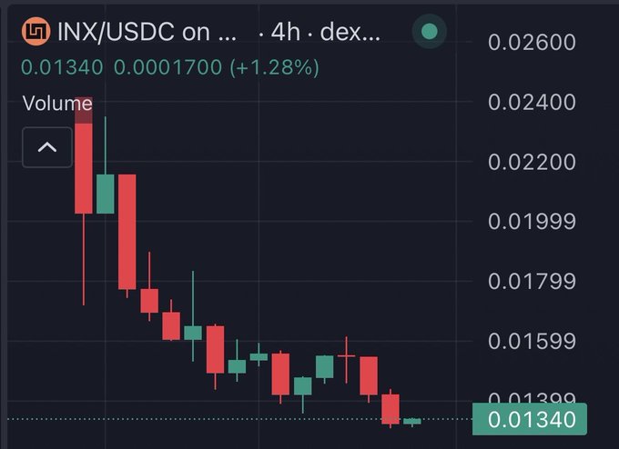 토큰 생성 이벤트(TGE) Kain이 폭락한 지 3일 만에 $INX는 1억 달러 규모의 FDV 모금 규모 바로 위에서 거래되고 있으며, 당시 참가자들은 자금을 1년간 묶어두었습니다.