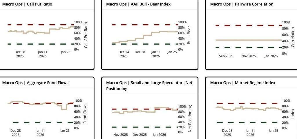 AAII 개인 투자자 심리: 65% 하락세(역발상 지표)? 오해하지 마세요. 이는 최근 매도세에 대한 개인 투자자들의 불안감을 반영하는 것이지만, 81%에 달하는 콜/풋 비율 과 함께 투기적 투자자(콜옵션 매수)들이 여전히 시장에 참여하고 있음을 보여줍니다.