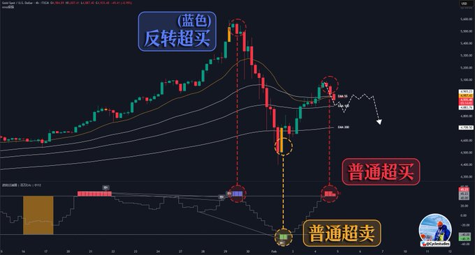 做空黄金的信号(普通超买)已经出现,但理想的位置还没到。