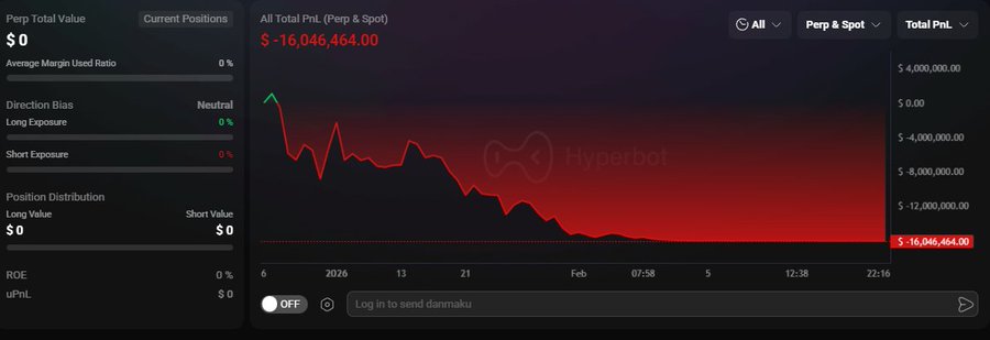 한 고래 투자자가 보유했던 롱 포지션이 완전히 청산되어 670만 달러의 손실을 입었습니다. 총 손실액은 1,600만 달러가 넘습니다. hyperbot.network/trader/0x6b26...…