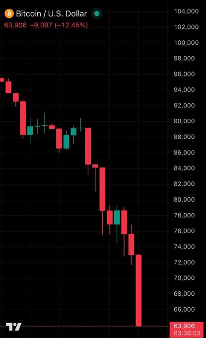 비트코인이 64,000달러 아래로 떨어졌습니다. 이더리움도 1,900달러 아래로 떨어졌습니다. 우린 망했어.
