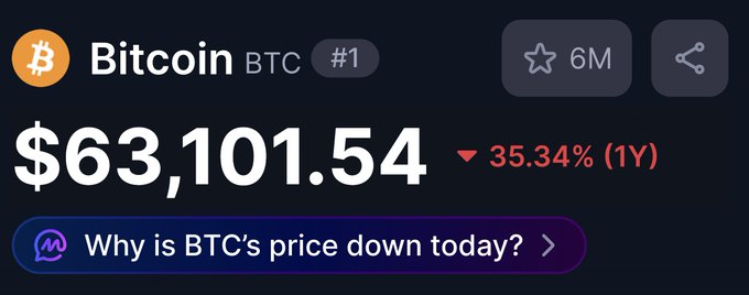 비트코인 가격이 사상 신고가 대비 공식적으로 50% 하락했습니다. 그리고 단 4개월밖에 걸리지 않았습니다. 10월 6일: 126.2k $BTC 2월 5일: 63.1k $BTC 믿을 수 없는