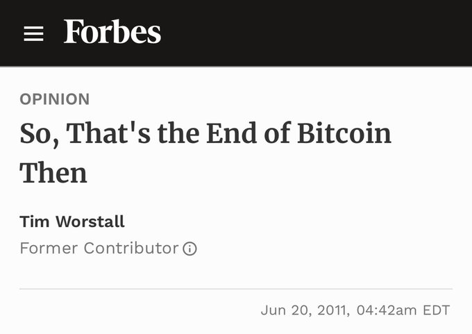 "그럼 비트코인의 시대는 끝난 건가?" - 포브스, 2011년 6월 $BTC 가격 $17.51