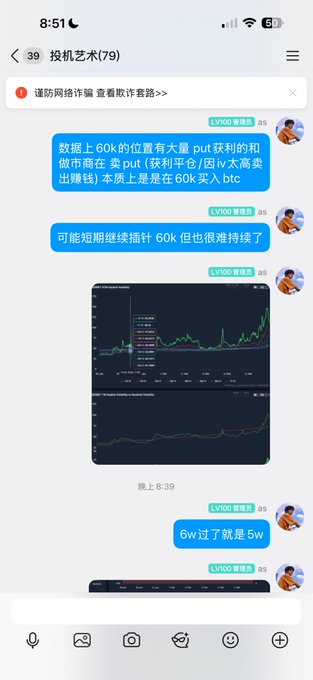 今天大橙子群里有人提了个问题我来解答一下,为什么 60k这么硬,就是因为数据上60k的位置有大量 put获利的和做市商在 卖put(获利平仓/因iv太高卖出赚钱) 本质上是是在60k买入btc。60k 如果过去了就是 50k了。
