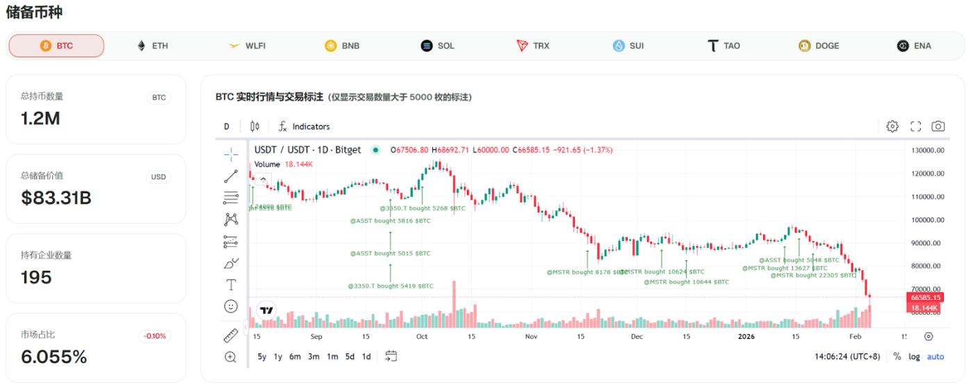 CoinFound 데이터에 따르면 현재 상장 기업 195곳이 총 1,205,412 BTC를 보유하고 있으며, 이는 전체 비트코인 공급량의 6.06%에 해당합니다. 그중 Strategy Inc(MSTR)는 713,502 BTC를 보유하고 있어 상장 기업 전체 포지션 의 59.19%를 차지합니다.