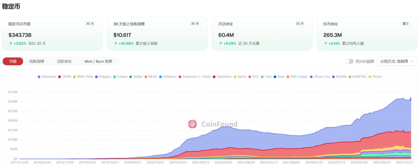 스테이블코인 시장은 전반적으로 성장세를 보이고 있습니다. 비트코인이 7만 달러 아래로 , 이더 2천 달러 아래로 하락하는 등 암호화폐 시장 전체가 큰 변동성을 보였음에도 불구하고, 디지털 자산 생태계의 "기반 시설"로서 스테이블코인의 역할은 더욱 강화되었습니다.