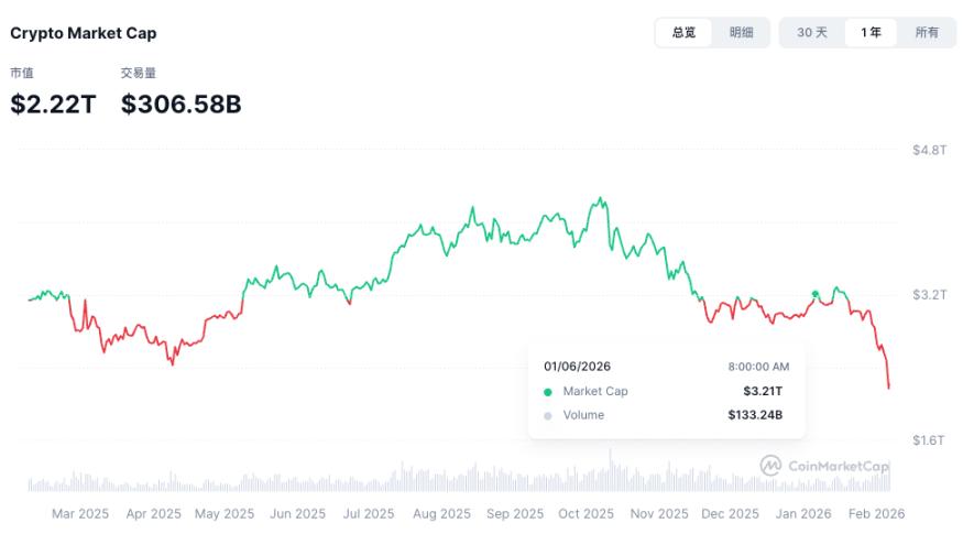 알트코인 시장은 전반적인 하락세를 보였으며, 이더리움(ETH)은 2,200달러에서 1,750달러까지, 솔(SOL)은 92달러에서 68달러 아래로 떨어졌습니다. 코인마켓(CoinMarket) 데이터에 따르면 암호화폐 시장의 총 시총 단 한 달 만에 3조 2,100억 달러에서 2조 2,200억 달러로 감소하여 1조 달러의 시총 을 기록했습니다.