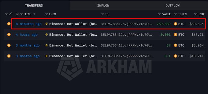 3개월간 활동이 없었던 한 고래 투자자가 769.89 비트코인(BTC)(약 5062만 달러 상당)를 인출했습니다. 현재 해당 고래는 807 비트코인(BTC) 을 보유하고 있습니다. intel.arkm.com/explorer/addres...…