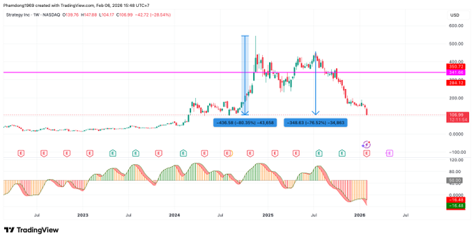Strategy의 MSTR 주가는 비트코인 투자 자금으로 25억 달러를 조달한 후 2025년 7월 이후 76% 하락했습니다. - 2024년 11월 최고점 대비로 계산하면 MSTR은 가치의 80%를 잃었습니다. #MSTR #Strategy #Bitcoin