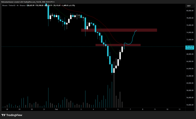 #비트코인 핵심 지지선입니다. 이 지지선을 돌파하면 7만 5천 달러 저항 영역까지 상승할 수 있습니다.