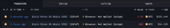 🚨방금 전 : 4200 비트코인(BTC) 바이낸스로 전송되었습니다