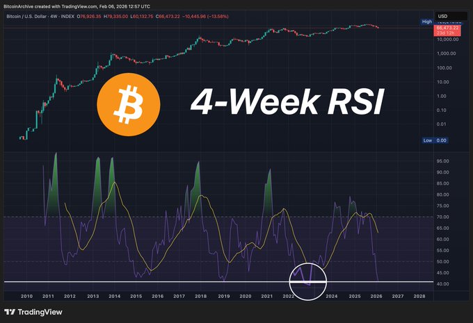–– 4주 RSI가 비트코인 역사상 이보다 낮았던 적은 단 한 번뿐입니다. –– 비트코인이 이보다 더 심하게 과매도되었던 적은 2022년 12월 단 한 번뿐입니다 🤏 –– 또한 RSI가 2011년 이후 가장 가파르게 하락했습니다.