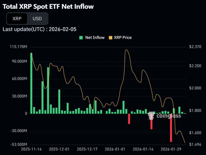 리플(XRP) 현물 ETF는 가격이 급락하는 상황에서도 여전히 순유입을 기록하고 있습니다 📉 총 순유입액은 전반적으로 긍정적인 수준을 유지하고 있으며, 리플(XRP) 기관 투자자들이 매수하기 선호하는 수준에서 거래되고 있습니다. 가격이 크게 떨어졌나요? 네. 기관들이 조용히 매수하고 있나요? 네, 그렇습니다. 🧵👇 # 리플(XRP) # 암호화폐ETF
