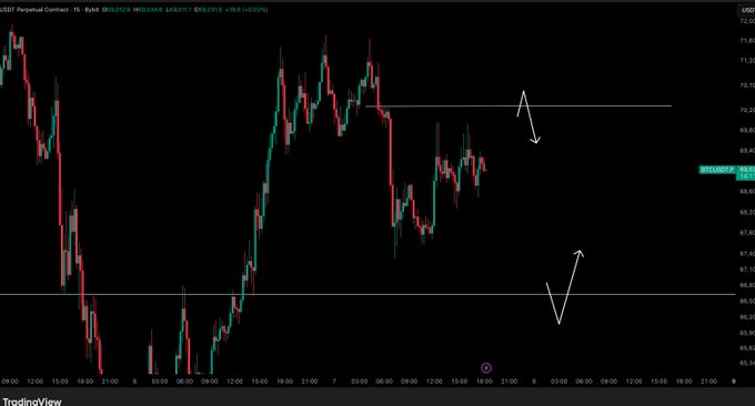 $BTC / $USD - 업데이트 시장 구조를 보면 66,500달러까지 하락하는 건 불가피하다고 생각합니다. 이제 숏 포지션이 진입하기만 기다리면 됩니다. 주말의 페이크아웃이나 잘못된 움직임 때문에 조금 더 어려워지긴 하지만요. 다리 아랫부분이 길어지거나, 윗부분의 수분이 숏 때까지 기다리면 될지도 몰라요.