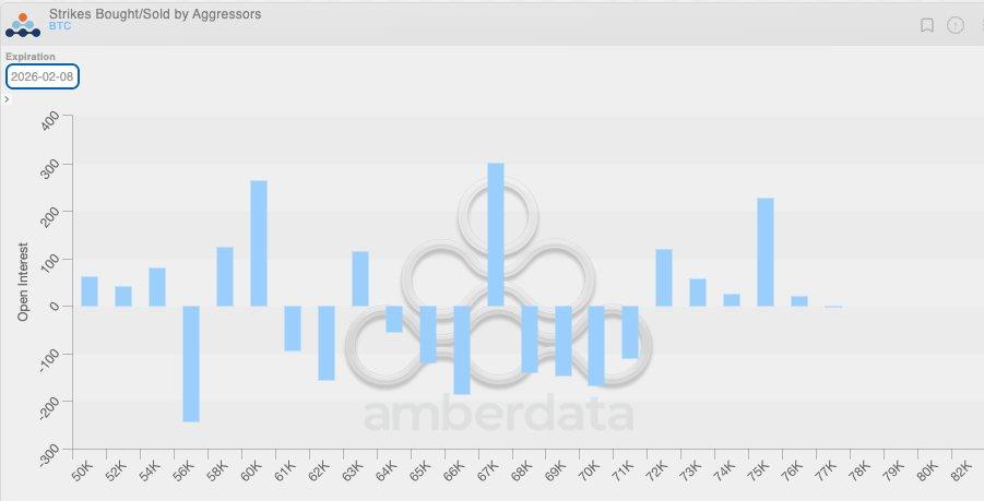 다른 사실과 함께 고려하면 논리가 더욱 명확해집니다. 최근 몇 주 동안 전반적인 변동성이 낮았기 때문에 암호화폐 시장의 고객들은 일반적으로 하락 관점 옵션 매수를 선호했습니다. 이는 암호화폐 거래자들이 본질적으로 감마 숏 포지션에 있으며 가격 책정에서 잠재적인 미래 변동성을 과소평가하고 있음을 의미합니다. 진정으로 큰 시장 변동이 발생할 때, 이러한 구조적 불균형은 하락 압력을 더욱 증폭시킵니다. 아래 포지션 분포 차트는 이를 명확하게 보여줍니다. 64,000달러에서 71,000달러 범위에서 거래자들은 주로 하락 관점 옵션의 감마 숏 포지션에 집중되어 있습니다.