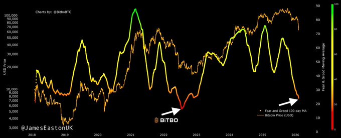 James이 기사는 기계로 번역되었습니다원문 표시$BTC 공포와 탐욕 - 100일 이동평균선 👀 역사상 두 번째로 낮은 수준으로 급락했습니다. 흥미롭네요. h/t: @BitboBTC 🤝섹터:레이어 1Halving 토큰Twitter에서면책조항: 상기 내용은 작자의 개인적인 의견입니다. 따라서 이는 Followin의 입장과 무관하며 Followin과 관련된 어떠한 투자 제안도 구성하지 않습니다.라이크즐겨찾기에 추가 코멘트공유관련 콘텐츠Decrypt하이퍼리퀴드는 리플과의 제휴 이후 시장 폭락에도 불구하고 투자 심리 위축에도 불구하고 상승세를 이어갔다.BTC0.42%Crypto Briefing비트코인 채굴업체 칸고(Cango)가 인공지능(AI) 사업 전환을 지원하기 위해 3억 500만 달러 규모 비트코인(BTC) 매각을 완료했습니다.BTC0.42%CoinDeskCoinDesk 20일 실적 업데이트: 비트코인 캐시(Bitcoin Cash) (비트코인 캐시(BCH))만 3.4% 상승하며 유일한 상승 종목이 되었습니다.BTC0.42%