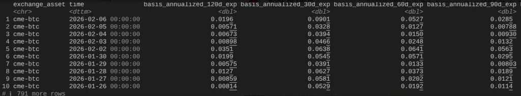 1월 26일부터 어제까지의 30/60/90/120일 CME 비트코인 베이시스 데이터가 포함된 전체 데이터 세트를 참조하십시오(업계 최고의 연구 전문가 @dlawant 님께 감사드립니다). 근월물 베이시스 거래가 2월 5일 3.3%에서 2월 6일 무려 9%로 급증한 것을 확인할 수 있습니다. 이는 ETF 출시 이후 저희가 직접 관찰한 시장 내 가장 큰 증가폭 중 하나로, 주문에 따른 베이시스 거래의 레버리지 축소라는 가장 유력한 시나리오를 보여줍니다.