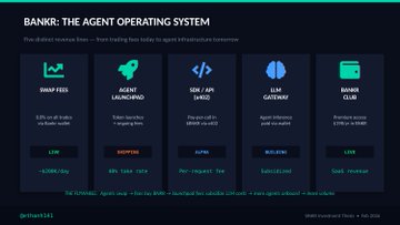 제 투자 논문입니다. 암호화폐의 진정한 0→1 전환점은 결제나 탈중앙화 금융(DeFi)이 아니라, 자율적인 AI 에이전트를 위한 비허가형(Permissionless) 화폐 계층이 되는 순간입니다. Bankr는 모든 온체인 에이전트에게 필요한 금융 인프라를 구축하고 있습니다. 지갑, 거래 실행, 토큰 출시, LLM 추론 기능을 모두 하나의 스택에 통합했습니다. 현재 수치는 (매출 성장이 없다고 가정하더라도) 비대칭적인 상승 배수 거래가 분명히 존재함을 보여줍니다. • 하루 약 20만 달러의 수수료 (연간 7,300만 달러) • Clanker v4를 통한 총 거래량 6억 7백만 달러 • 매출의 1.2배에 거래되고 있음 비교 대상: HYPE 10배, VIRTUAL 30배, TAO 130배. 심지어 약세장조차도 재평가 대상입니다. 전체 논문은 첨부 파일을 참조하세요 👇