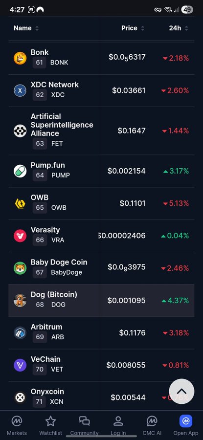 $DOG는 코인마켓캡에서 조회수 TOP 70 안에 드는 코인입니다(#68). 🐶👀 광고 없음. 유료 홍보 없음. 오직 자연스러운 관심.