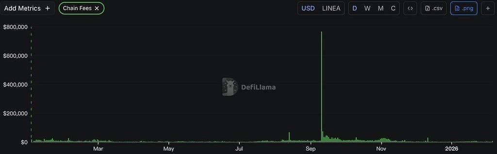 - 생태계 수익 미미: 온체인 애플리케이션의 일일 수익이 30달러 미만으로 떨어져, 생태계가 사실상 사용자 기반을 잃고 유용성이 거의 제로에 가까워졌음을 나타냅니다.