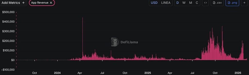 - 정체된 생태계 수익: 온체인 애플리케이션 수익이 급격히 감소하고 있으며, 모든 프로젝트의 일일 총 수익은 약 7,000달러에 불과합니다.