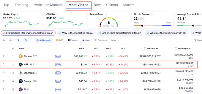 $XRP is the #2 most visited asset on CoinMarketCap.