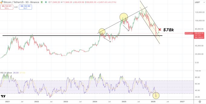 $ 비트코인(BTC)/ 테더 USDT(USDT) 3일 CT 투자자 절반이 지난 몇 년간 모든 횡보 구간을 전통적인 "약세장"으로, 상승 채널 저항선 돌파를 불 정점으로 규정했던 거 기억나세요? 2년 동안 그랬는데 다들 얼마나 쉽게 잊어버렸는지... 이제 그 계좌들은 약세장으로 전환해서 4만 달러 목표가를 올리고 있네요 😏 재밌는 이야기네요. 만약 홍콩 펀드의 강제 매도가 끝났다면, 특히 그 지점에서 V자형 반등이 나타났던 점을 고려할 때, 6만 달러가 제 생각에는 논리적인 저점이었을 겁니다. 7만 8천 달러짜리 대기실 😌