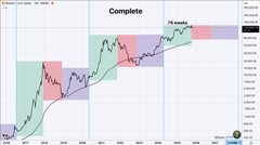 312 days ago I posted the chart below. I estimated that the Bitcoin top could be 76 weeks after the halving (pending we stick to the 4-year cycle). This has remained my pinned tweet.